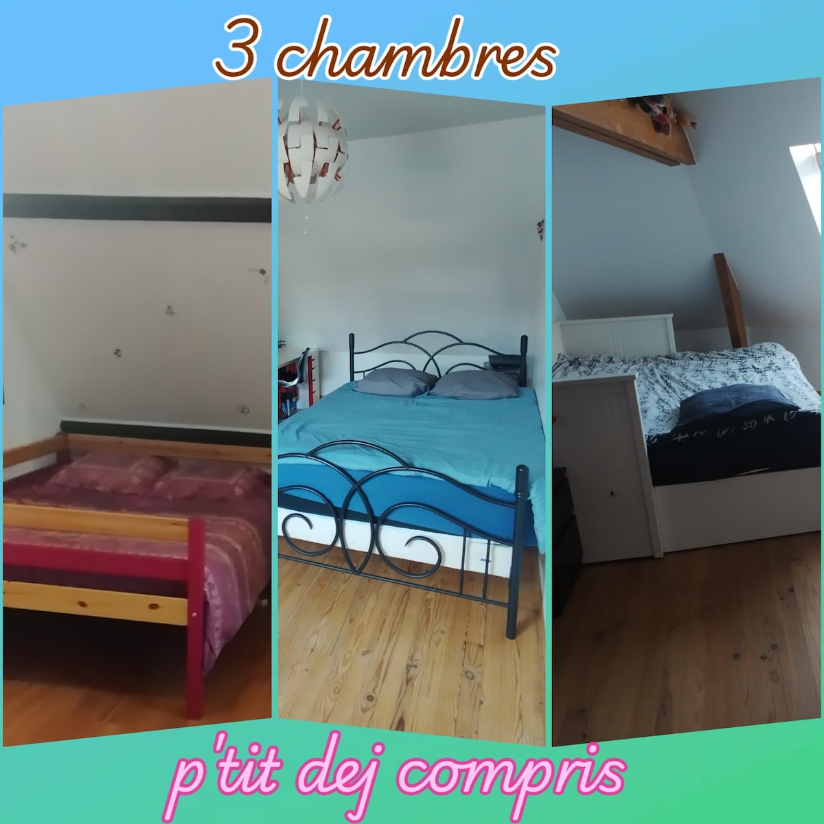 3 nice rooms, breakfast included.