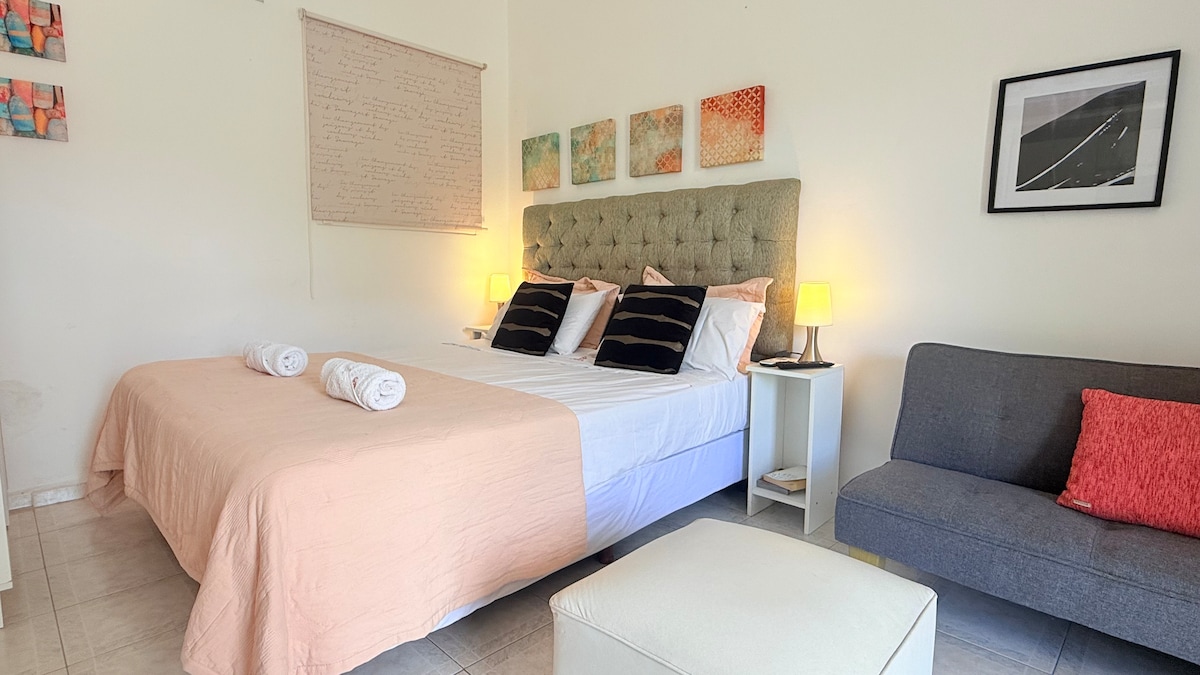 Charming, rustic, very bright 19th C studio, restored with original doors and windows. The studio is totally independent with a private entrance with a covered parking space. We have a double bed and an original 19th-century Victorian bed for extra guests, a powerful ceiling fan and Air Condistioning, for use if the temperature soars. We have a microwave to heat fast food and a refrigerator to keep fresh drinks and snacks