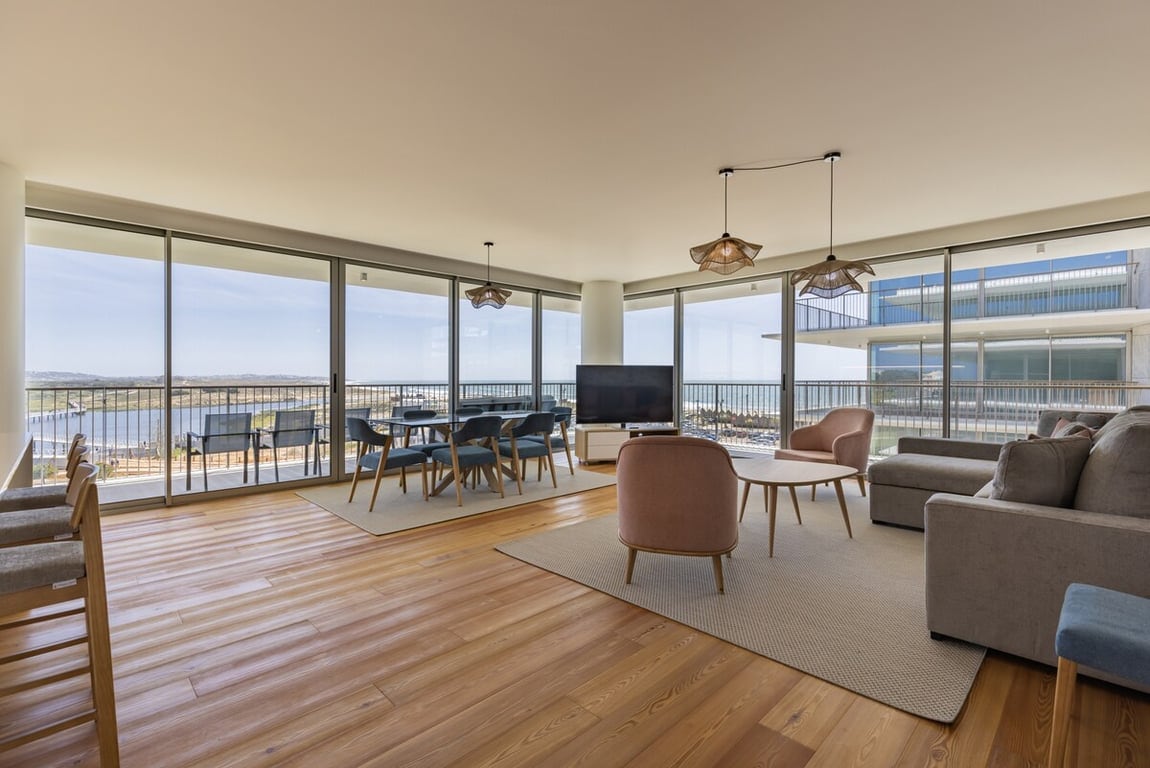 Luxuriöse Wohnung direkt am Strand in Bayline, der exklusivsten Wohnanlage von Armação de Pêra. Nur wenige Schritte vom Strand und den beliebten Vila Vita Beach Clubs entfernt, mit direktem Zugang. Geniesse entspannende Einrichtungen wie einen beheizten Innenpool mit Sauna und Dampfbad, einen Aussenpool, einen voll ausgestatteten Fitnessraum und einen privaten Parkplatz. Ideal für Familien, Paare und Remote-Mitarbeiter, die Komfort, Natur und Premium-Annehmlichkeiten an der Algarve suchen.