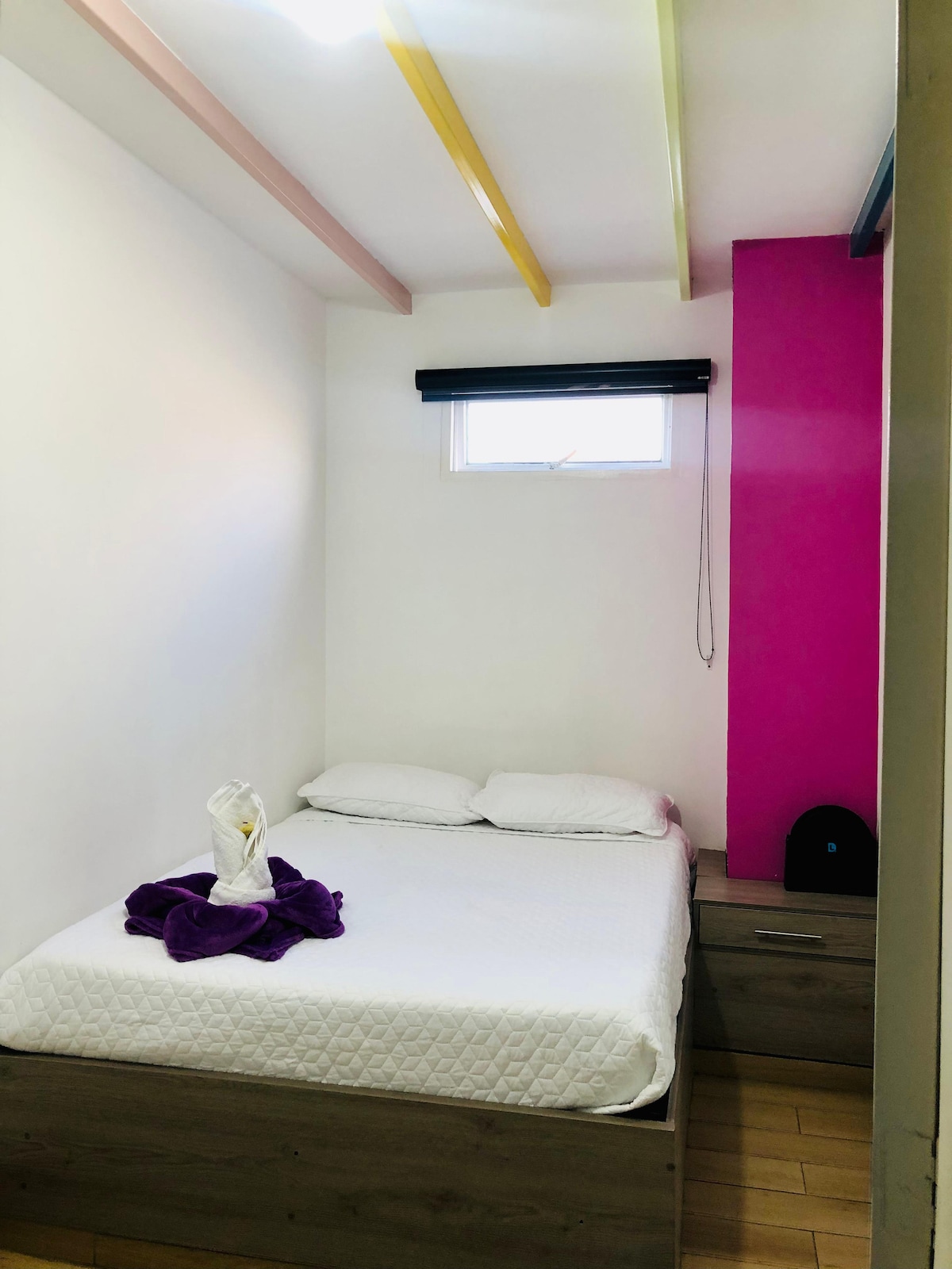 A single bed room OUR ACCOMMODATION HAS: • Smart TV. • Cable TV. • Two Wi-Fi networks. • Clothes organizer. • Hot water shower. • Fan. • Two living rooms. • Two complimentary hot beverage dispensers. • Coworking space. • Large common areas. • Sale of drinks and snacks. • Fixed and portable desks. • 24-hour service. We invite you to check out our main listing, Hotel Café Color.