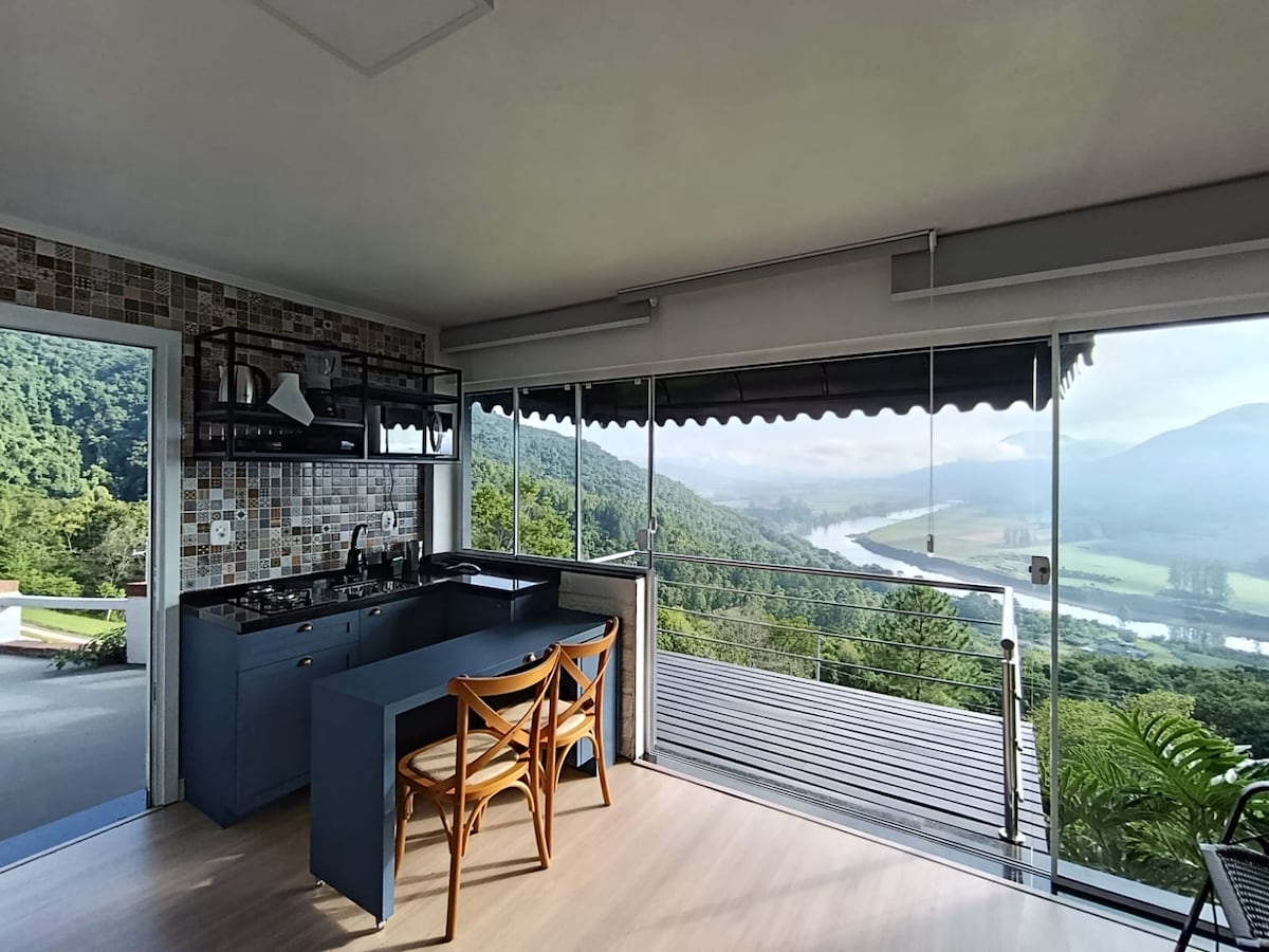 Discover the first Tiny house in Vale do Taquari, located at the top of Morro da Ventania in Arroio do Meio. Enjoy a delicious welcome coffee prepared with colonial products and an outdoor Jacuzzi with amazing views of the valley. Full kitchen for preparing meals. Cooking essentials available, as well as frozen pizzas and beverages for sale. For the kids, there is a playground and a large fenced patio for playing We are on the Route to the Christ the Protector of Encantado and Viaduct 13.