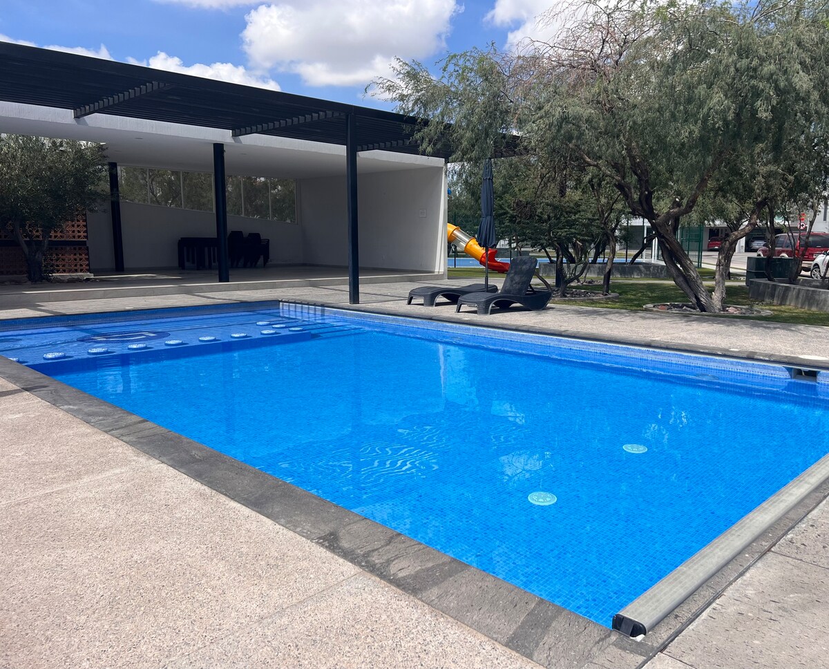 Casa Colibrí is located in the private Puerta Natura, in front of Eje 128 of the industrial zone, 13 minutes from Plaza Sendero and 16 minutes from the historic center. It is fully equipped for you to have a very pleasant stay. Always keep the place clean. The area is very safe and has 24/7 surveillance. You can use the pool and gym by requesting it from your servant a day before. Outside the private area, there is an Oxxo and 2 minutes away there are many shops. WE DO BILL