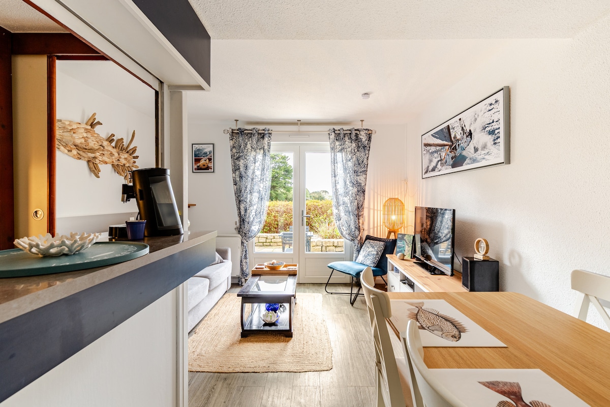 Ideally located in a nice secure residence, I will make your stay a pleasant relaxing time. In the heart of the port of Crouesty, offering many restaurants and shops, a short walk from Fogeo Beach and the Miramar Thalasso, I am an elegant 24 m2 studio that can accommodate 4 people. Refurbished in April 2023, I offer great services and stunning views. My charm will surely seduce you... Housekeeping and bed and bath linens not included. 😉