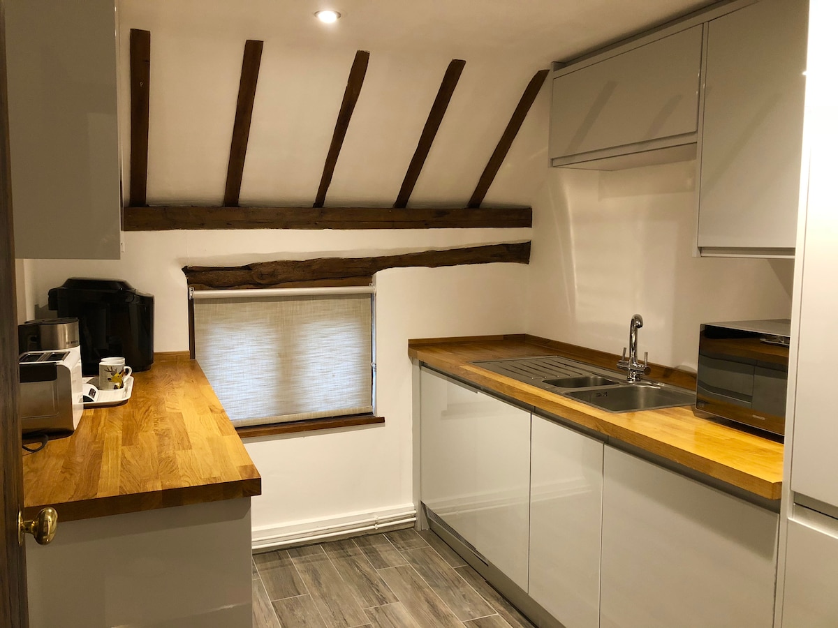 1 Bedroom self contained studio, with private entrance(and includes self check in) , which is situated along a beautiful quiet lane, it also has it's own private parking on driveway. The studio comprises of a bedroom, bathroom (wet room)and kitchenette area, which is equipped with a microwave, mini fridge and kettle, there is also a washing machine if guests wish to use. There is an outdoor seating area, where you can enjoy breakfast or a glass of wine in the evening.