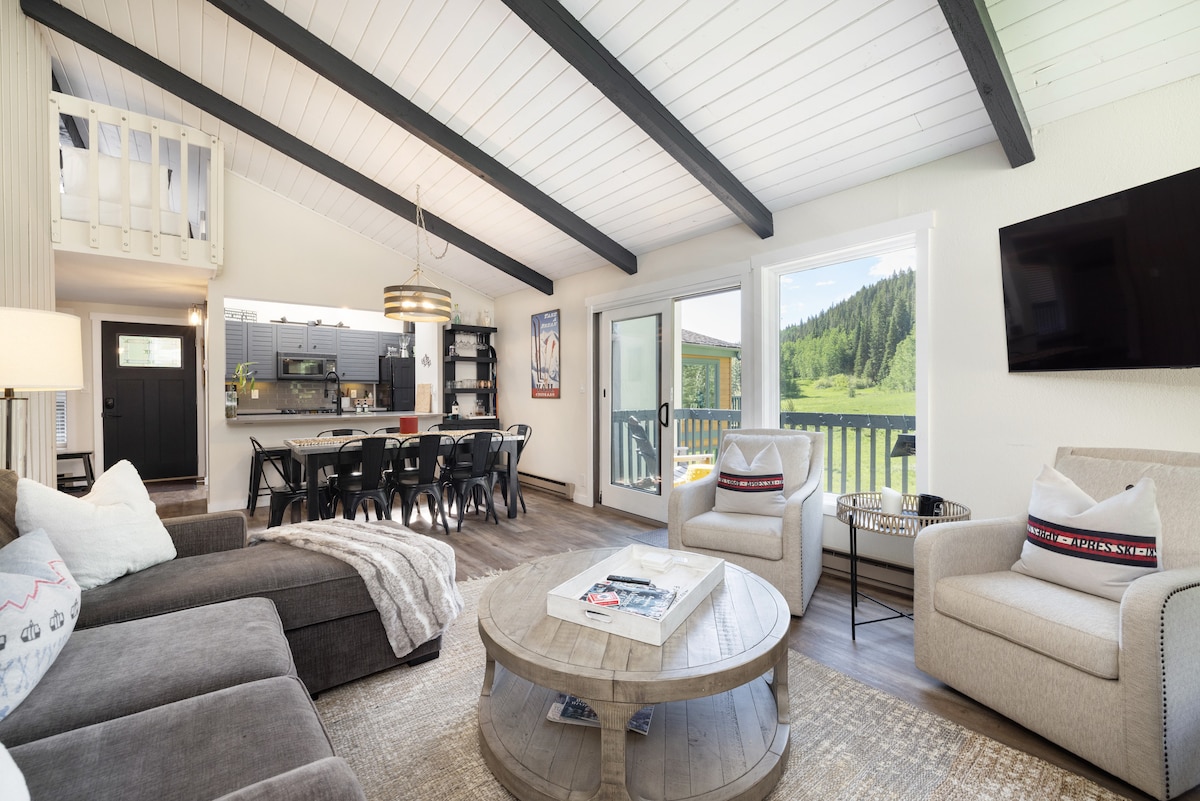 Make this beautiful Snowmass Village condo your adventure hub or relax comfortably. Enjoy biking / hiking rim trail from the complex or short shuttle ride to the ski slopes (can also ski across bridge). 20 min from Aspen. Brand new renovation. 3 smart TVs. New furniture and bedding. Washer / Dryer, private deck with grill Pool, large hot tub, sauna, town shuttle, bus route, free parking, ONE DOG per rental, unbelievable views