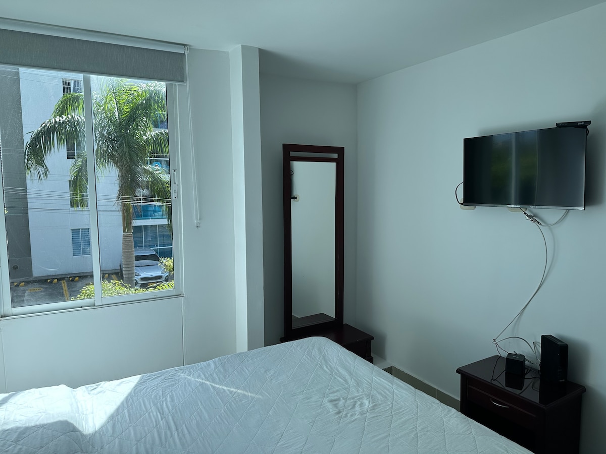 Relax in this quiet and elegant space near the Mayales Shopping Center, which consists of furnished living room with entertainment center, large screen TV, wifi and balcony overlooking the mountains. Pantry dining area Kitchen equipped with utensils, fridge and blender. Work area with washing machine. Main room with double bed, TV, closet, internal bathroom, air conditioning. 2 secondary rooms, each with a double bed, air conditioning and a shared bathroom in the hallway.