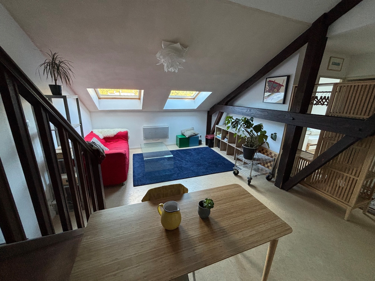 Short walk from station in peaceful spot, but still in heart of this historic riverside town with interesting shops, bakeries, bars, cinema, restaurants, open air pool, tennis court, fishing lake and market. Ideal base for walking, kayaking, biking with lakes for swimming, sailing, fishing. Ground floor studio in medieval stone house, with separate apartment above,terrace overlooking street with railings and gate, perfect for wining,dining and bike storage. Free parking on former cattle market.