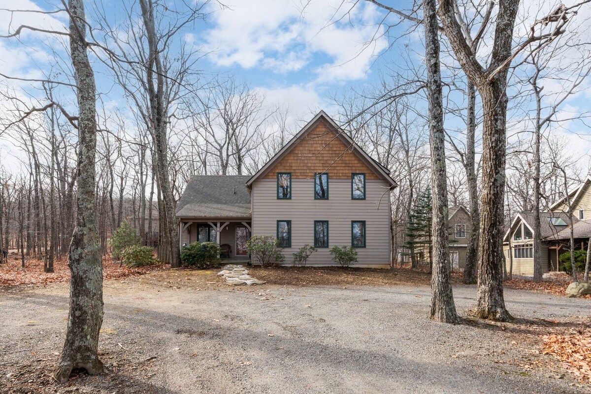 This chalet offers a spacious panaromic view, with a high wooden vaulted ceiling. 1900 sq. ft. home. 1st floor master bedroom with king size bed and shower, double sink vanity, large jacuzzi-tub, half bath, and laundry room. Spacious living room with large walk out deck, propane BBQ grill, fire pit and tiki torches. Kitchen offers newer appliances, double sinks, dish washer, oven, microwave and duel drip style Carafe and Keurig coffee maker.