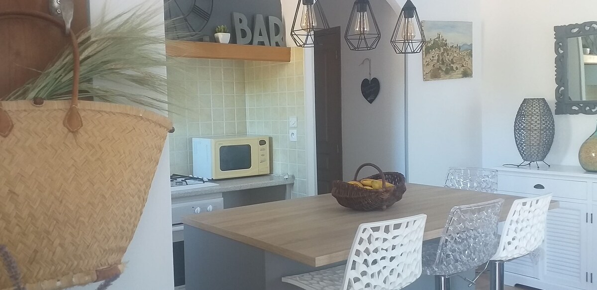 Apartment on the first floor of a stone house with independent entrance located in the heart of the village with views of old Vernègues. The village has a pleasant country café that also serves as a bread depot and an ice cream parlor in old Vernegues. The apartment offers the possibility of having breakfast on the balcony, a kitchen open to the living room, a bathroom, a separate toilet and a bedroom that can accommodate a baby.