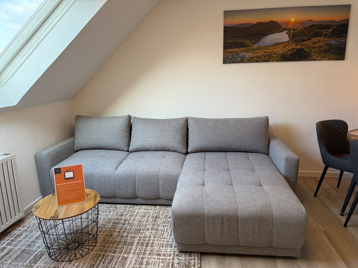 Welcome to UNIQUE in the Wolfsburg center! Our newly renovated 3-room apartment has everything you need for a lovely stay: → King size bed → Box spring sofa for the 5th and 6th guest → Smart TV 65 inches → Massage chair → 1000Mbit/s LAN+WLAN → charging cable 3in1 → NESPRESSO coffee → different types of tea → Kitchenette with dishwasher, fridge & freezer, stove, oven → Bathroom with washer-dryer+hairdryer → directly on the Wolfsburg pedestrian zone → Own parking space → 24h check-in