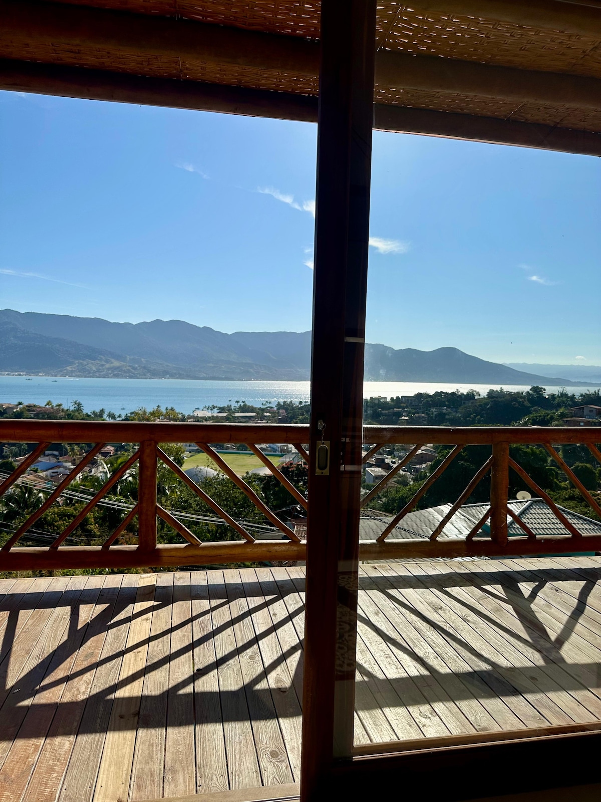 A bungalow built artistically in every detail... a bathtub open to the woods with a glass ceiling gives the feeling of being immersed in nature, with a centenary fig tree in front and many birds... intimate and welcoming in connection with Nature, in contact with this reserve area of the Atlantic Forest. The other hot shower is on the deck open to the woods and is delightful day or night, with a starry sky and moonlight.