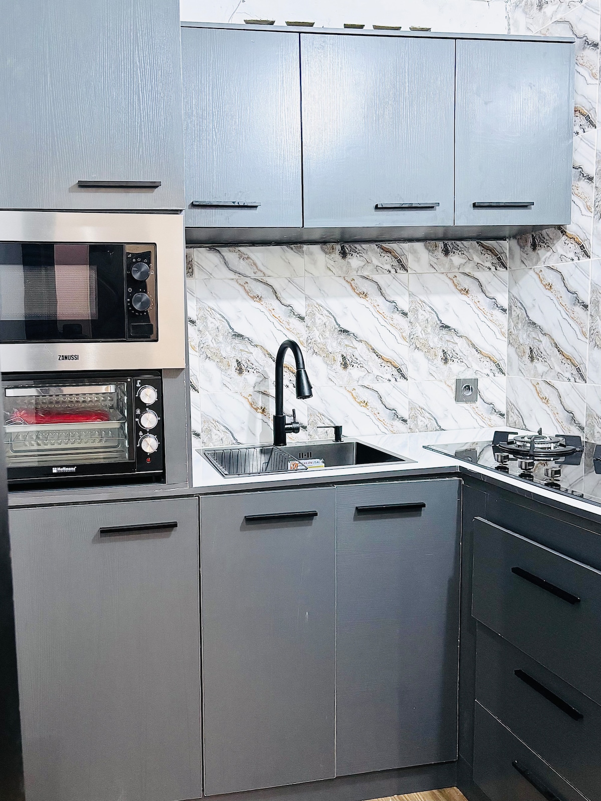 Enjoy this stylish and spacious apartment located in the heart of Calavi center and perfect for your stays. All rooms are air-conditioned, The kitchen has all the modern amenities, The living room is equipped with smart tv and JVC 2.1 hifi system to enhance your relaxing moments, Wifi is available in the apartment For long stays , our agents do the general cleaning every 2 weeks at your request.22965284414