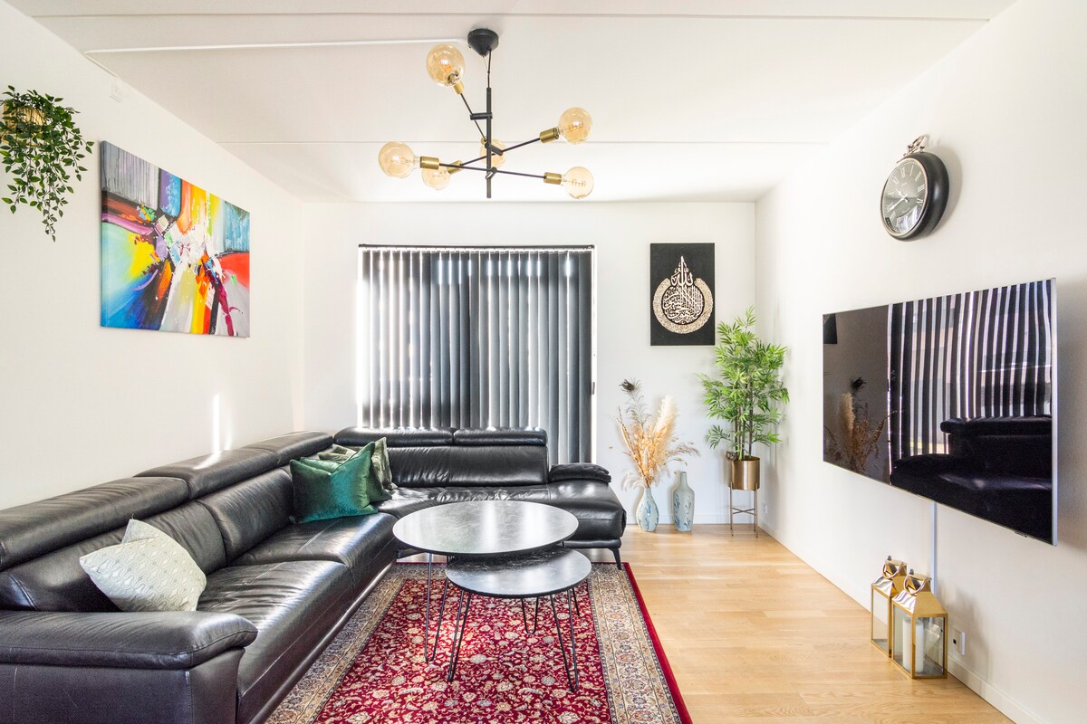 Here's the translation: "The area is conveniently located near Copenhagen's largest park, Valbypark which is perfect for walks, runs, and cozy moments. At the same time, you have good shopping options in the vicinity (about 200 meters to Netto), and it only takes a couple minutes by bike to get to Åmarken St. and Ny Ellebjerg St. and get to Copenhagen center. Sofa doesn’t extend. The large window cannot be opened due to damage. Kitchen and bedroom is newly renovated, updated pics coming soon.