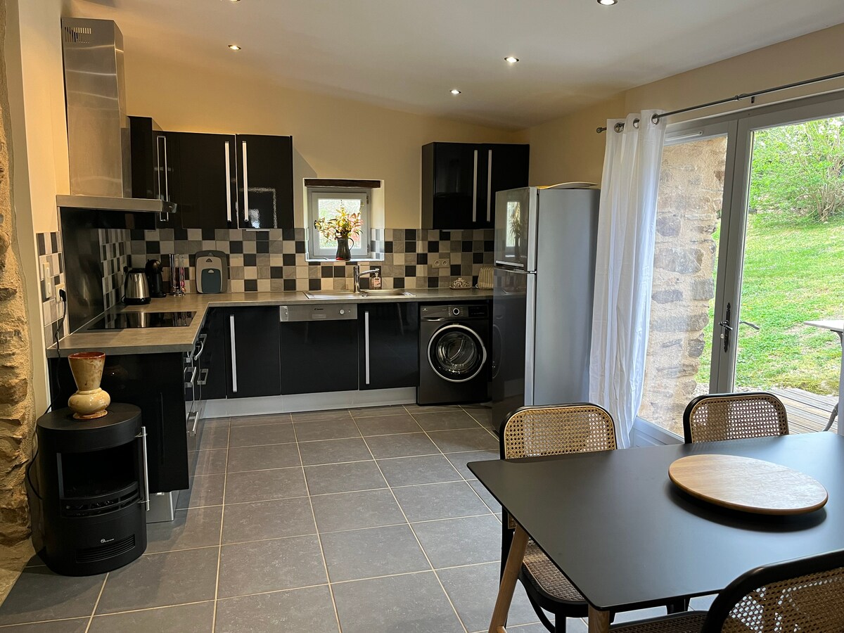 60 m2 accommodation in renovated barn, large terrace, fenced garden and private parking. At the gates of Aubarc and the Lot Valley. You will find two restaurants, a bakery, a grocery store and a tobacco store within walking distance of your residence📚. For your leisure, its body of water is equipped for fishing, playground, tennis and pétanque courts. Beautiful hikes are available from the village. 20 minutes from LAGUIOLE and the beautiful plateau of L'AUBRAC 5 minutes from the village of ESTAING.