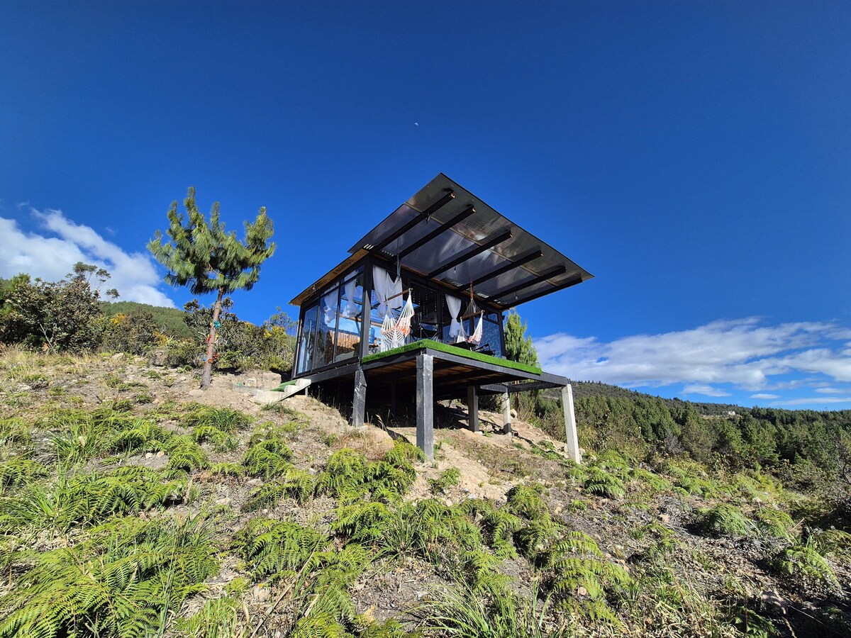 Connect with nature on this unforgettable getaway. Mini house between mountains near Guagualzhumi hill, 20 minutes from Cuenca's historic center. Enjoy a natural, comfortable, modern, minimalist, and complete habitat. The house has an outdoor camera system, alarm with door, window, and motion sensors, and an outdoor lighting system with home automation Located a few meters from the "Plaza Baguanchi" store, where you will find everything.