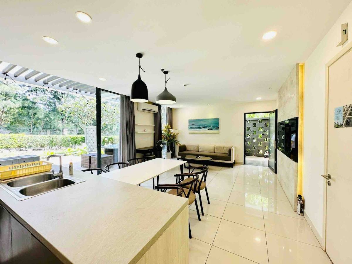 Where you have a “really chill” travel experience in the coastal city of Vung Tau. House of Trees - Livin 126 Villa A modern resort garden villa with green space with trees and a large swimming pool on the premises. The swimming pool is safe for young children, designed as an outdoor bathing area. Large garden space, with outdoor BBQ dining table and chairs. Equipped with a grill and other amenities. Entertainment facilities in the villa include billiard tables, karaoke The villa is designed only on the ground floor, not upstairs.