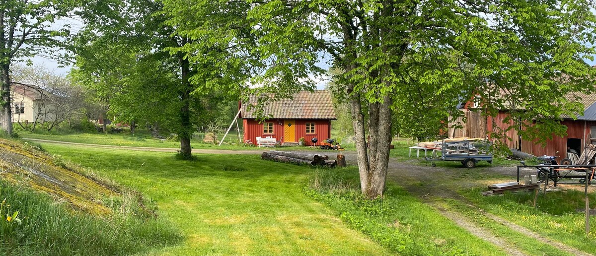 🏡 Welcome to the countryside - without being far away from the city! Cozy guest house on a small farm. 🌲Directly adjacent are cozy forest paths that lead both to the Lunnelid nature reserve and to Råda Vy with its nice outdoor area for hiking, biking and running. 🏪Approximately km to the city center (via road 44 or through the forest) 🌅A good starting point for day trips such as Hindens Rev, Kinnekulle, Kållandsö and more. 🍀Our own home is next door A warm welcome from Emil & Julia!🙂