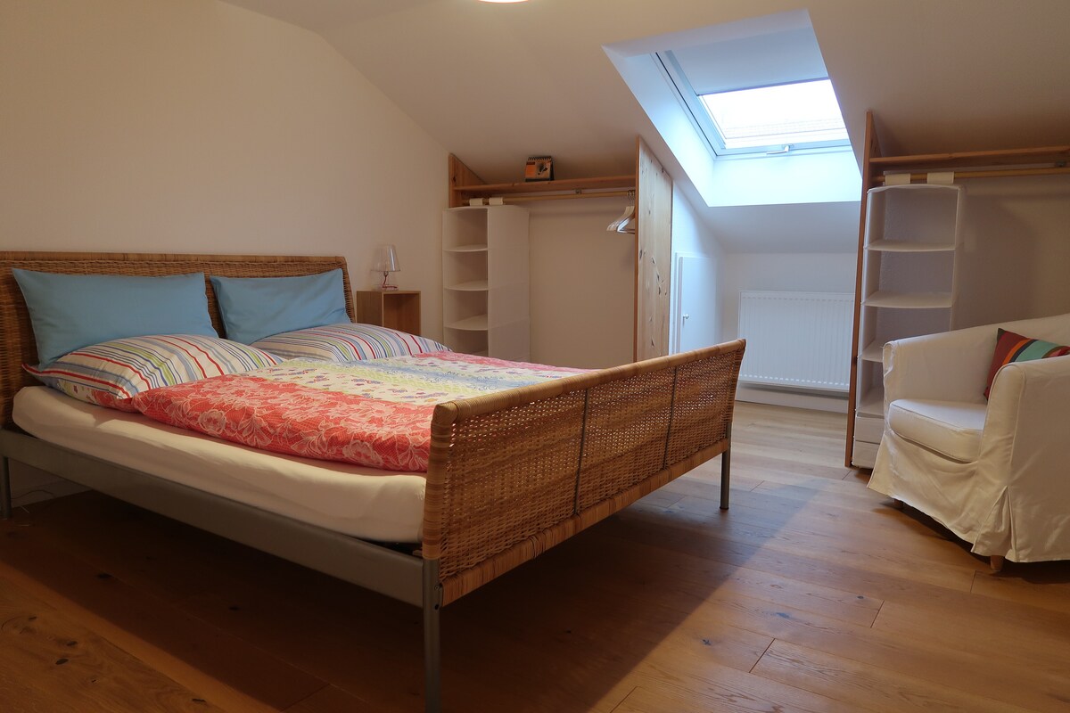 ✨ Auszeit im Grünen Stilvolle, helle Dachwohnung mit eigener kleiner Loggia – ideal für Paare (und kleine Familien) , die Ruhe und Komfort lieben. 🌿 Wohnen & Wohlfühlen ✮ Kleine Loggia mit Wiesenblick für Frühstück + Sundowner. ✮ Wohnraum mit Sofa, Esstisch, Klimagerät, Küchenzeile (Ceran, Mikrowelle mit Grill/Heißluft, Kühlschrank mit Gefrierfach, Carbonator, Nespresso etc.). ✮ Schlafzimmer mit Doppelbett, Einbauschrank und Sekretär. ✮ Bad mit Wanne, Duschwand, WC und großem Spiegel.