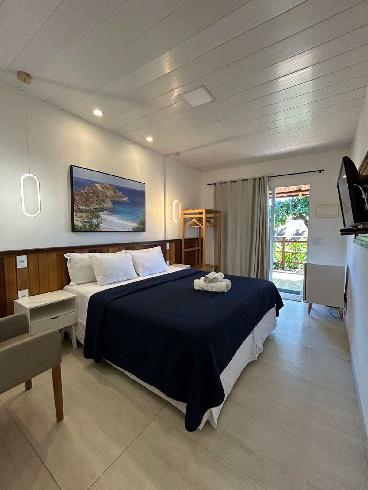 Ótimo custo-benefício a poucos minutos das praias do Cachorro, do Meio e da Conceição. Quarto com cama de casal, ar-condicionado, TV e Wi-Fi. Cozinha completa com fogão, utensílios, torradeira, liquidificador, cafeteira e frigobar. Banheiro em cerâmica com chuveiro elétrico e secador. Cooler disponível para seus passeios. Conforto e praticidade para viver Noronha.
