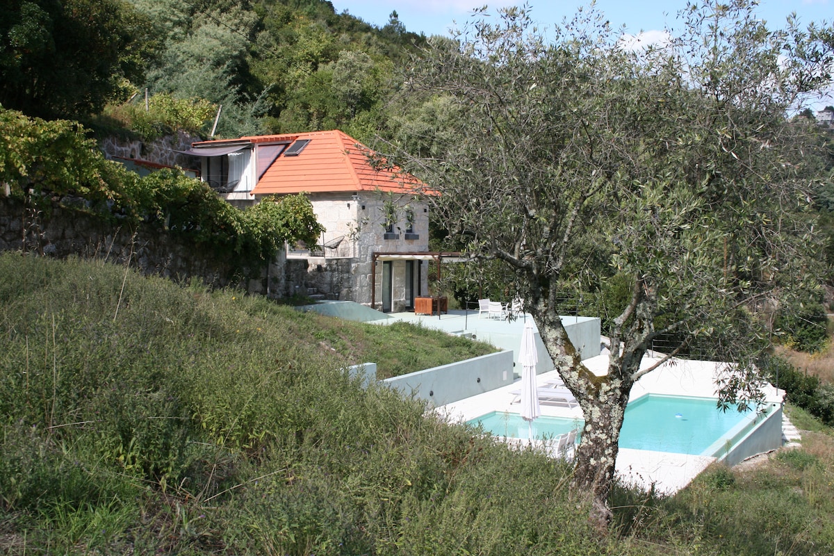 17th C farmhouse set in 25 acres of private grounds, with superb views over the Douro River, reached by a lovely winding track . It has been in our family for several generations and is fully modernised it retains its unique charm and atmosphere / 4 double bedrooms, 2 bathrooms, with shower, a private pool for guest use only, garden furniture, gas bbq . A majestic view over the river and mountains. Detached Villa with Full Privacy on own grounds.