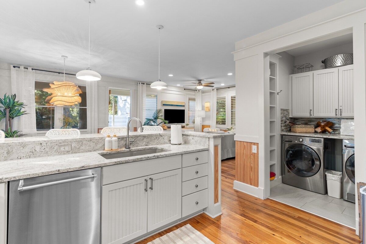 Relax in our cozy, modern home tucked in the woods of Cape Fear Station. Kayak from our private community dock, go crabbing, swim at either of the club pools or take a quick golf cart ride to nearby East Beach! Stylish & comfortable, this home has been fully renovated and outfitted with family-friendly, thoughtful amenities to elevate your vacation and help you pack a little lighter! Have a question about our home or need something important for your stay? Let me know, I'd love to help!