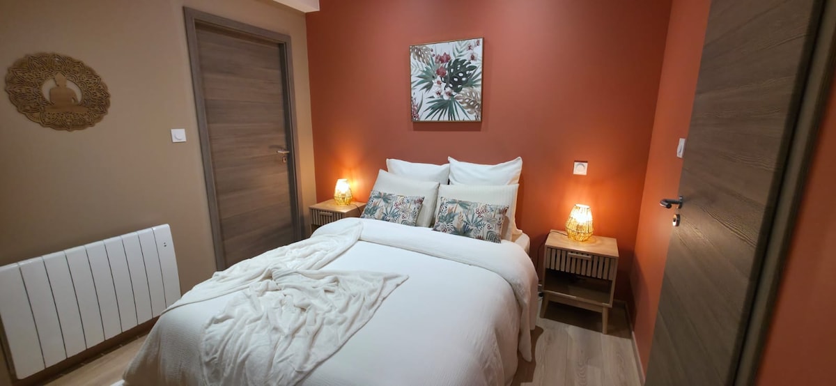 Ideal for Swiss cross-border commuters (2 km from the Swiss customs of Vallorbe). Welcome to "Les Dodos d'Or", at the "Sabot de Vénus", a cozy 37 m² T2 apartment, new and bright, on the top floor, with an unobstructed view to the south. Equipped kitchen (fridge, freezer, dishwasher, oven, microwave, Dolce Gusto coffee machine), cozy living room with 100 cm Google TV and fiber WiFi, bedroom with double bed and desk. A modern cocoon inspired by the wild and rare orchid of the Jura (Le Sabot de Vénus).