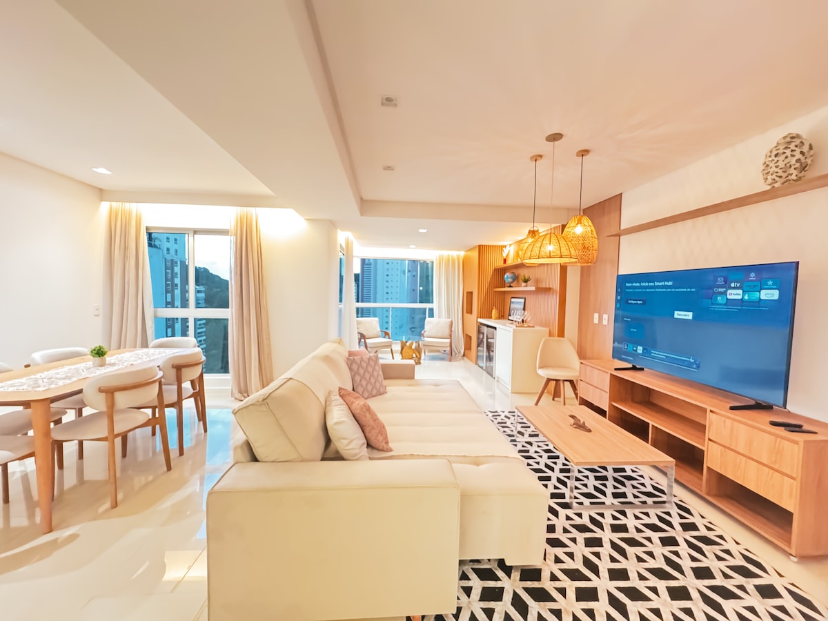 Large apartment in a condominium facing the sea, with a privileged location on Avenida Atlântica — the main avenue of Balneário Camboriú! ✔️ 2 en-suites + 1 bedroom, all with air conditioning ❄️ ✔️ Bed and bath linens available 🛌🧴 ✔️ Spacious balcony with charcoal grill 🍖 ✔️ Amazing city view from the top of the 10th floor 🌇 ✨ Perfect for those looking for space, comfort and practicality to enjoy the best of the city on foot! 🚶♀️🚶♂️