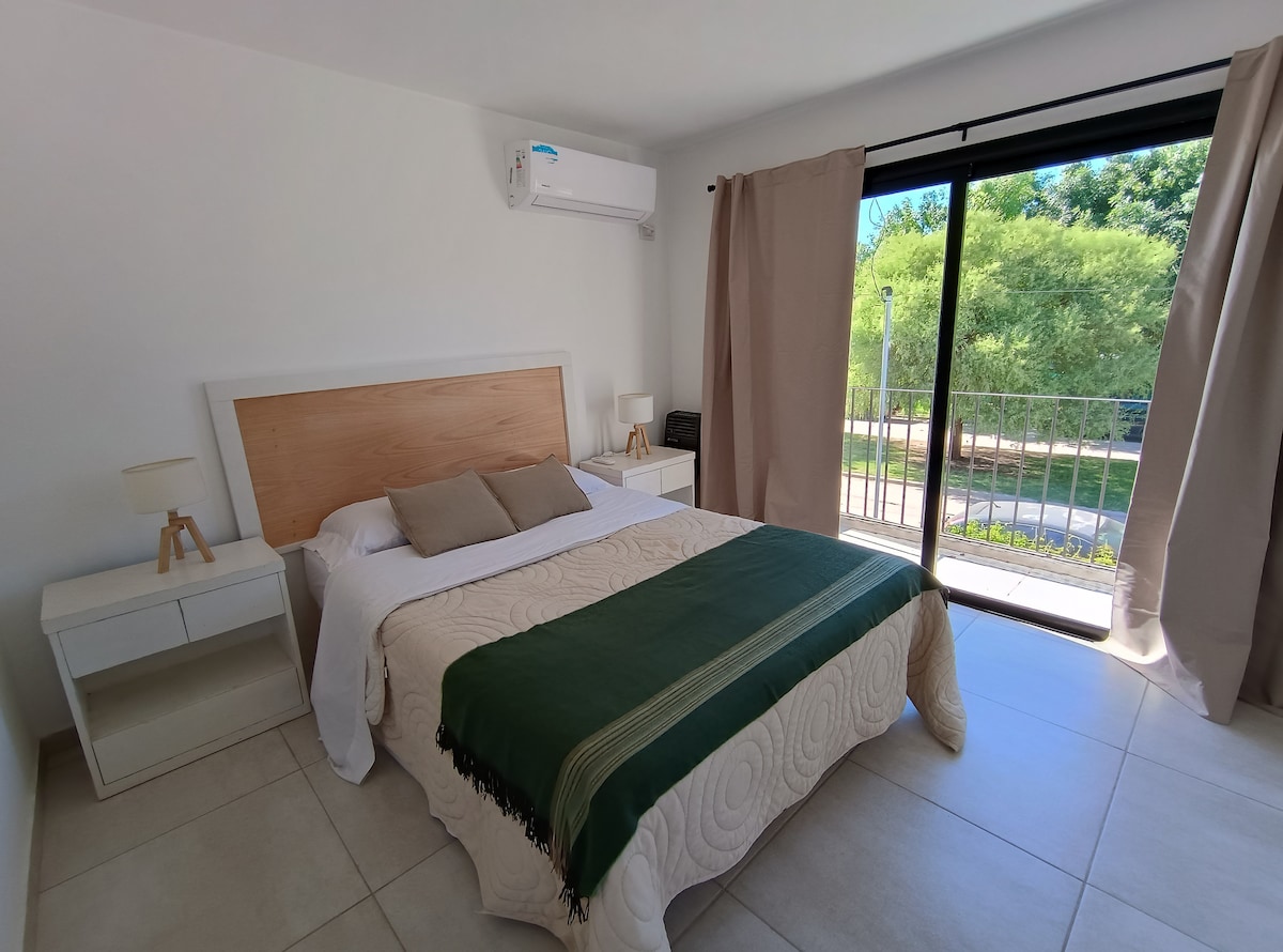 1-story apartment with space for up to 4 people. Located 4 blocks from the main square Mitre, 6 blocks from the Municipal Amphitheater where folklore and rock festivals are held, 2 blocks from the bank, 1 block from gastronomic venues. Spacious, bright, with a terrace balcony facing Anchorena Street, one of the main ones. Fully equipped and furnished for you to enjoy a few days in the city of Baradero. If you need parking, it is paid at check-in