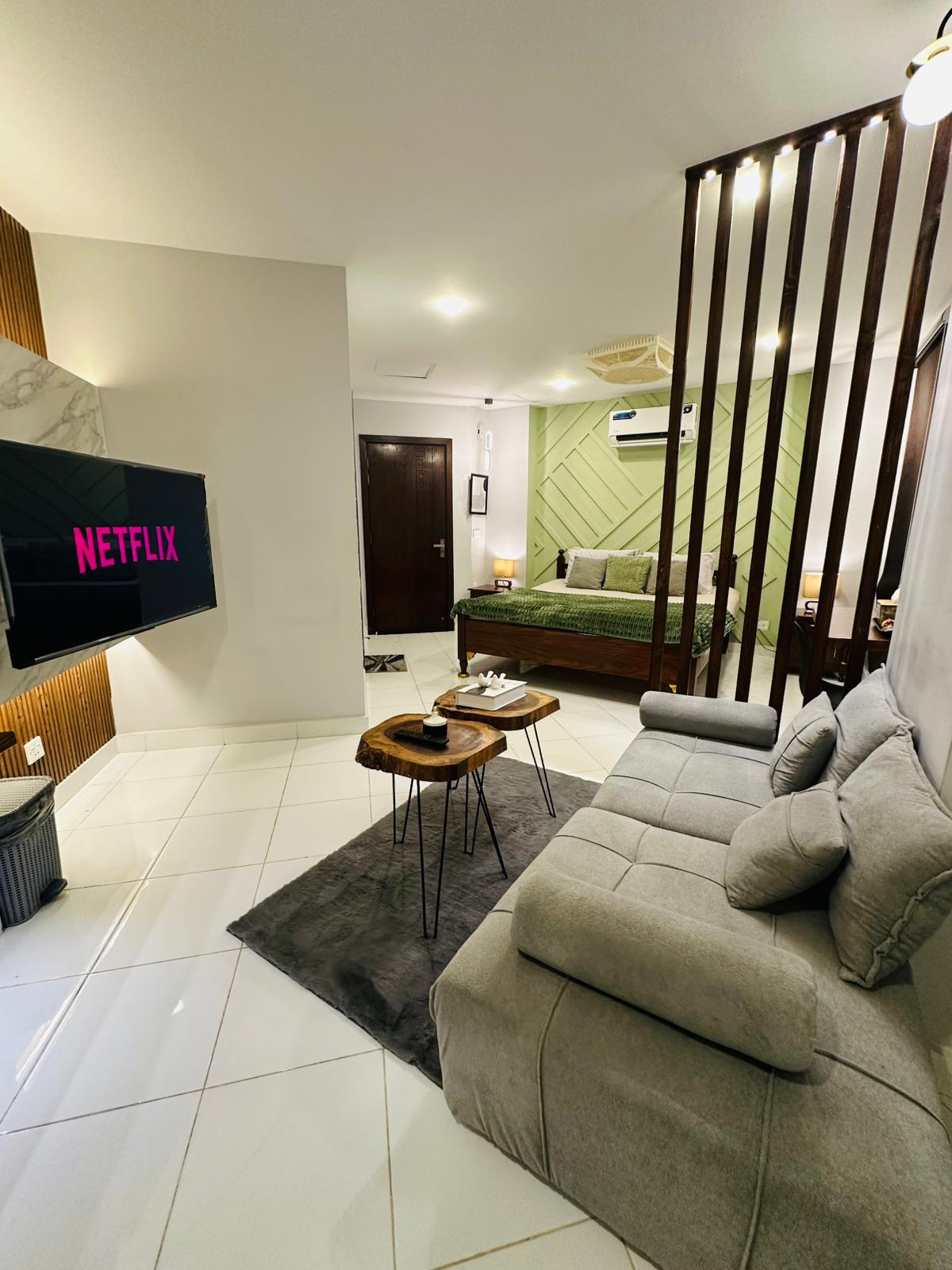 “Welcome to your cosy retreat in Bahria Town Karachi” An aesthetic place to stay for couples ,friends and family Free Services: Netflix Amazon Refreshment Kitchen Utilities Electricity ,gas,water 24/7 available Extra services with extra charges: 1:Maid 2:Car with driver 3:Home chef 4:Servant for outside works Other things to note please be mindful of noise levels and refrain from playing music loudly to ensure a peaceful enviroment for everyone.Enjoy your stay.