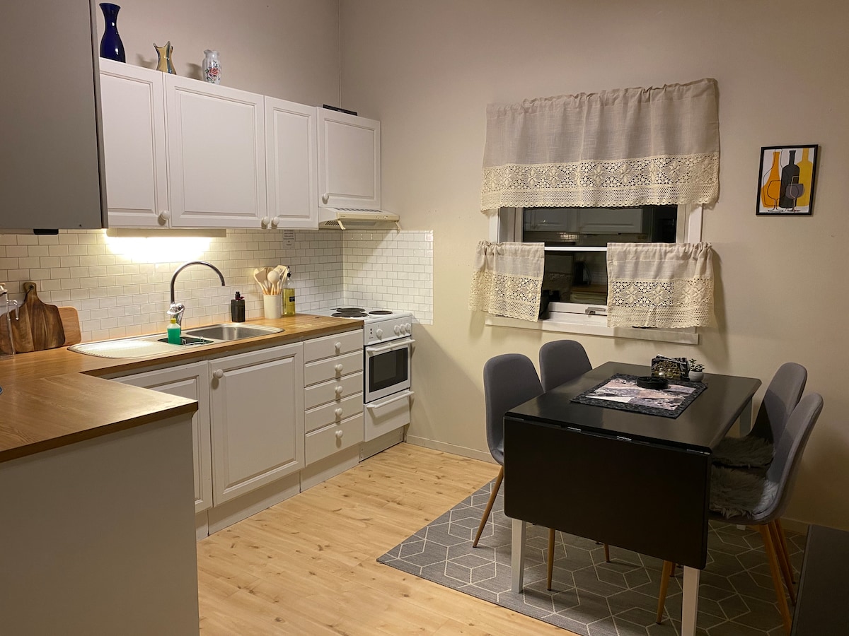 Large apartment with 4 bedrooms and 2 bathrooms, good standard. The kitchen is well-equipped for cooking. It includes linens, towels, various soaps and possibility to wash clothes. The place is perfect for northern lights watching and nature experiences with proximity to the Lyngen alps. The site is located directly below the northern light belt with little light pollution, 50 minutes from Tromsø. It is recommended to rent a car and we offer a discount deal at Hertz.