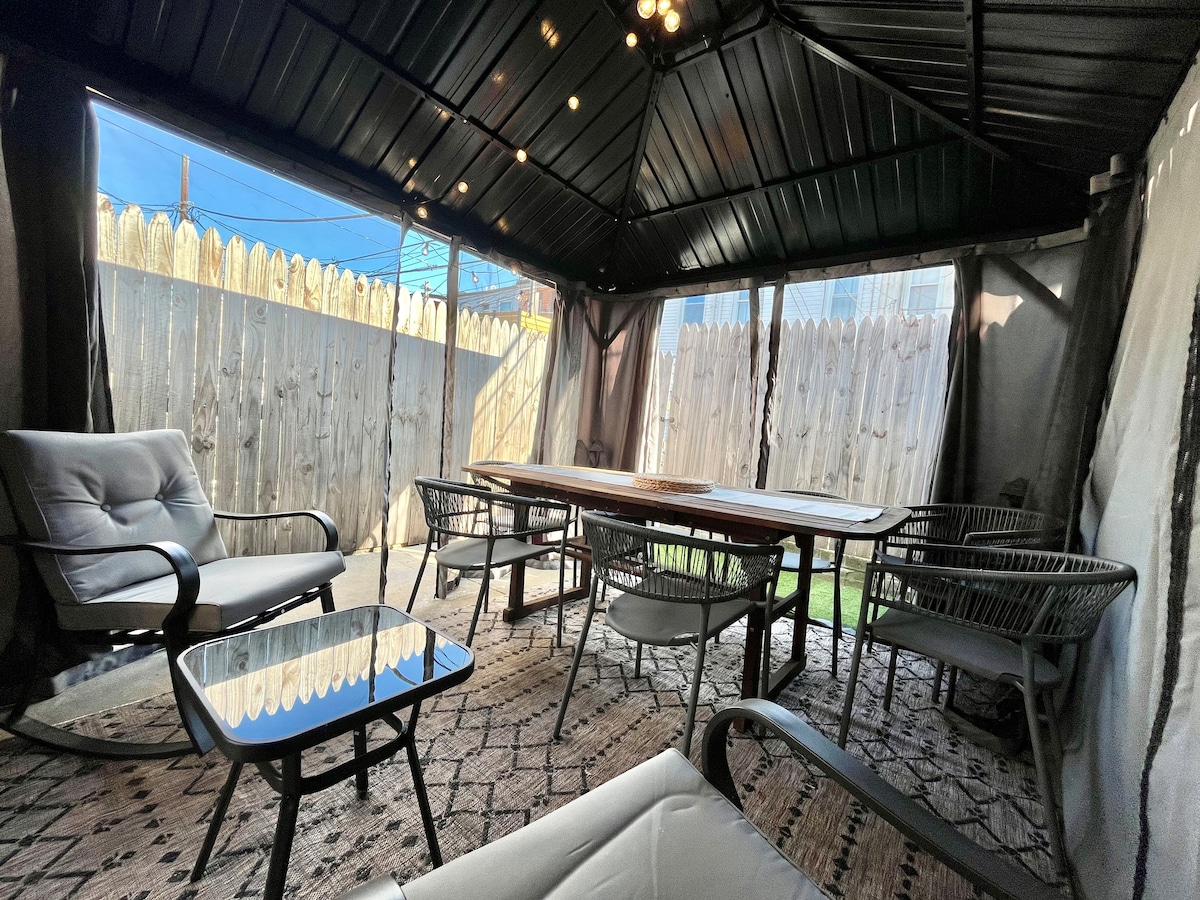 Welcome to your creative one bedroom, one bath retreat in Reservoir Hill, designed for peaceful getaways, staycations, or work trips. This art filled space blends historic charm with modern comfort and features multiple standing and seated workstations. Enjoy a functional bedroom with a Murphy bed for added space, a fully stocked kitchen, formal dining area, bar cart with vinyl player, balcony views, and thoughtful details throughout, perfect for rest, creativity, and photo worthy moments.