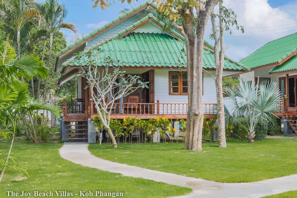 Unique rare bungalow in KOH PHANGAN Conciergerie Services Right on a very special beach, Beautiful private garden, Quiet and near everything, 1 bedroom with Aircon 1 more person can sleep in the living room, there is another Aircon Perfect location, 5 minutes from supermarkets, 7eleven, shopping, yoga, restaurants, bars and other activities. This bungalow is perfect for group of friends or family that are looking for calm on the beach with being close to everything and close to the night life
