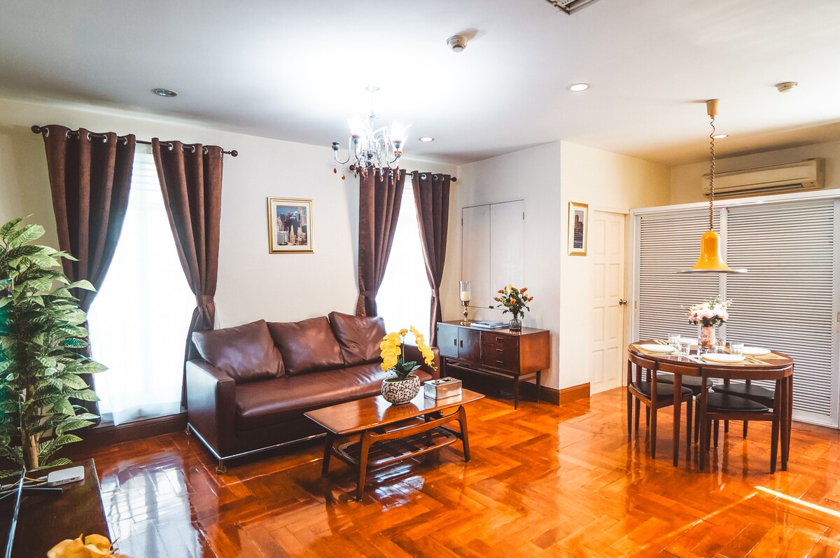 Very Clean!!! And Upscale Located in the heart of Bangkok City, Sukhumvit26 - 7AM-5PM Golf Cart Delivery to Nearby Area eg. K-village, Nihonmachi, Phrompong BTS - Spacious room size of 106 sqm, high ceiling 3 meters -Premium Bedding -Brand New 55inches TV with Channels Worldwide - House Keeping - Washer and Dryer inside the unit - Private jacuzzi , Built in Air Purifier - Silent and Calm environment, Clean and High Security Standard - Fitness and Lobby