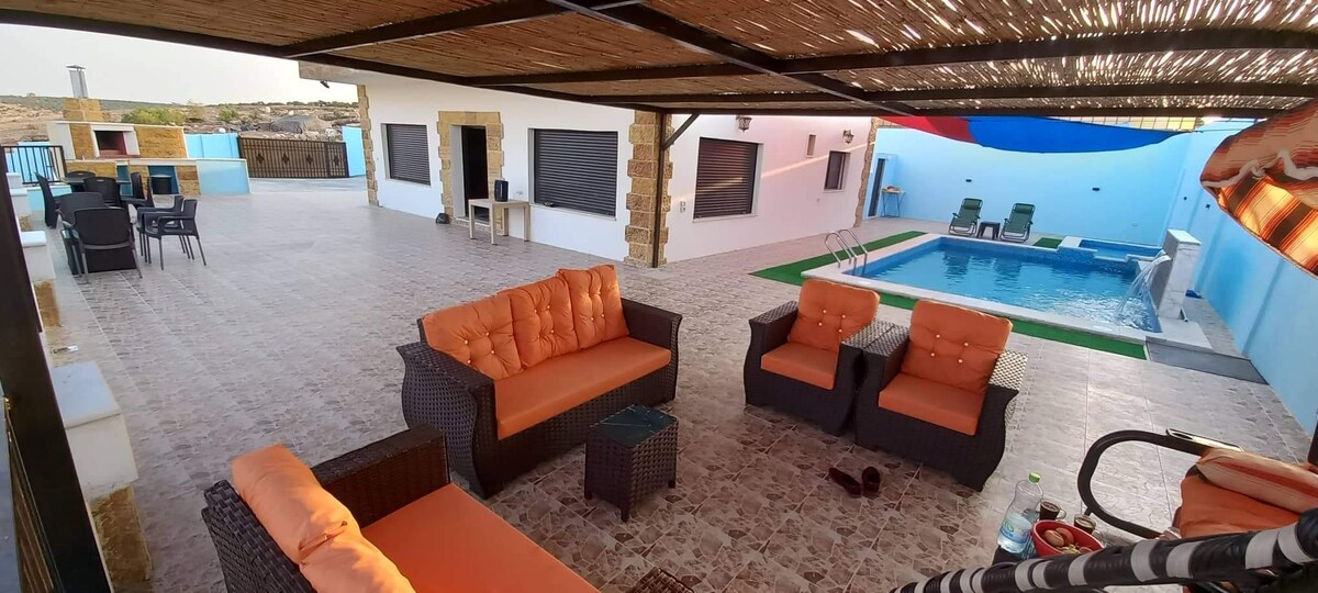 Furnished rural house in Umm Qais, perfect for families and groups. Comfortable rooms, equipped kitchen, clean bathroom, free Wi-Fi, stunning natural views, close to tourist attractions. Peaceful rural stay with hotel-like comfort.