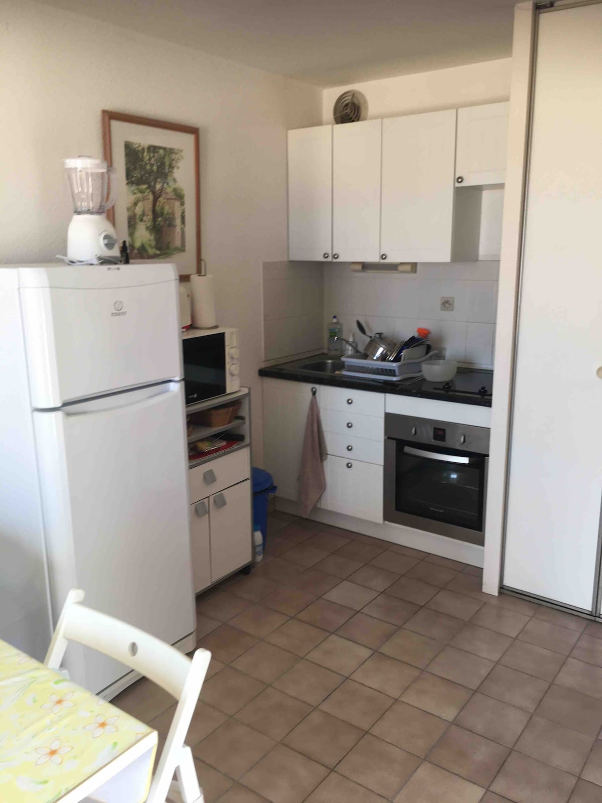 Logement de 50 m2 comprenant 2 grandes chambres avec un accès direct à la salle de bain. Une télé par chambre. Une kitchenette équipée de plaques induction, un micro-ondes, réfrigérateur, cafetière, bouilloire. Vous avez le nécessaire pour cuisiner. Vous disposez d'une table avec tabourets en hauteur dans la cuisine. Pas de salon Appartement équipé d'une climatisation réversible. Situé à proximité du port et de tous les commerces. Proche de Collioure, 30mn à pied où 5 mn en bus à 1€.