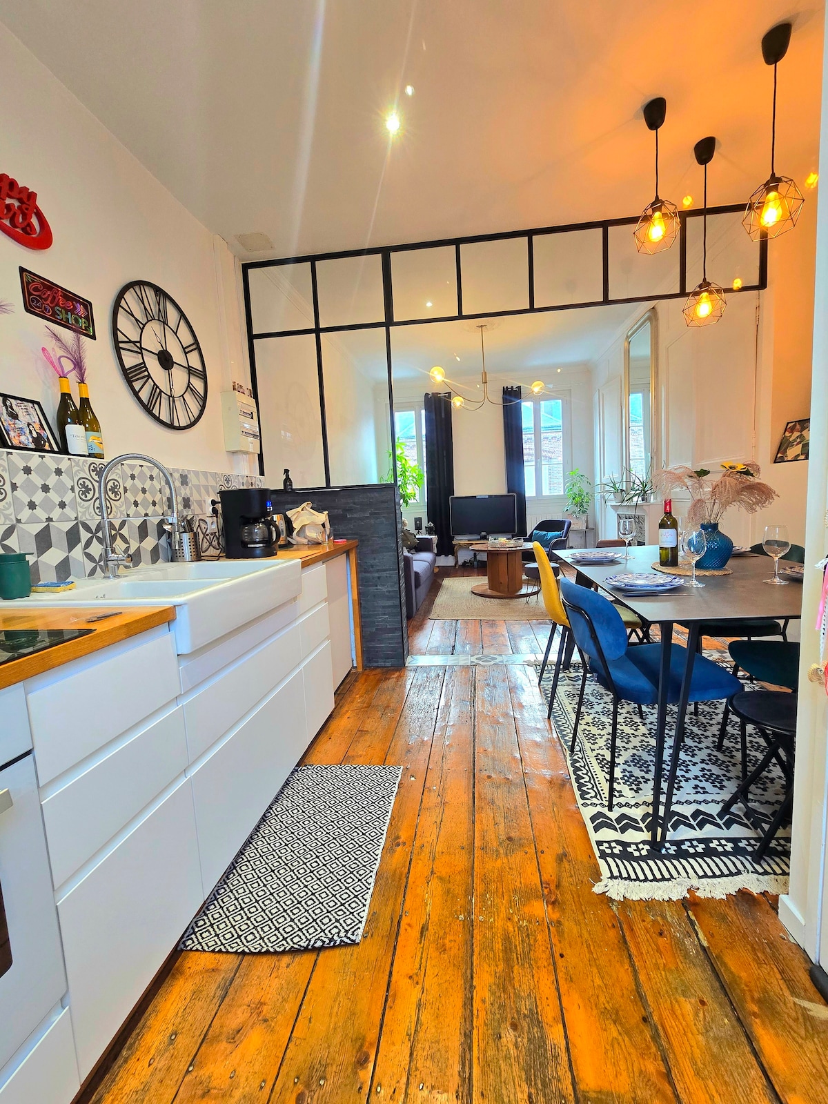 Bienvenue dans notre duplex de 38 m², soigneusement agencé et offrant tout le confort nécessaire pour un séjour agréable. Vous trouverez au rez de chaussé une cuisine équipée (plaque de cuisson , four/micro-ondes, réfrigérateur) À l'étage, la chambre, spacieuse et confortable, dispose d'un lit Queen Size, d'un coin repos aménagé avec un canapé convertible. La salle d'eau attenante à la chambre, comprend une douche à l'italienne, un lavabo et un WC Nous serons ravis de vous y accueillir !
