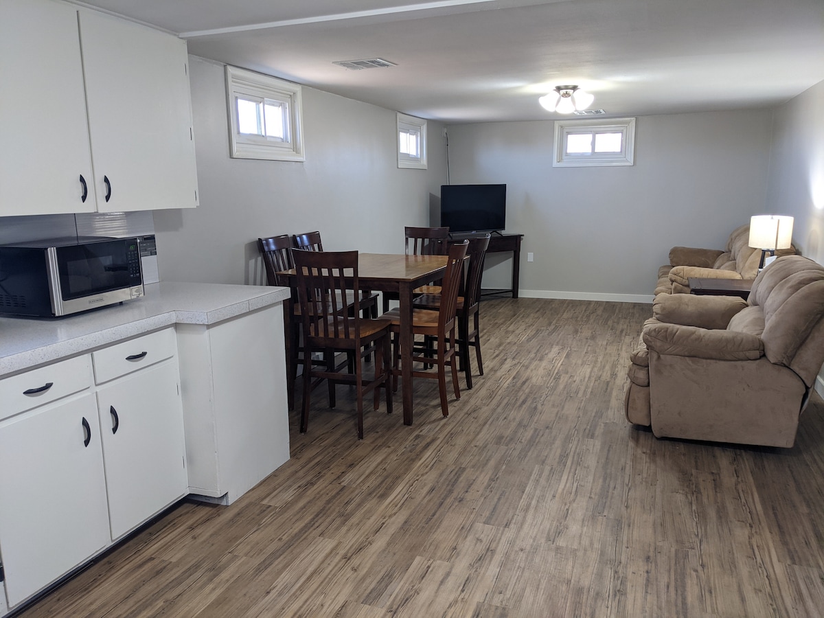 Enjoy our bohemian/ mid-century hyge' - (Pronouced hue-gah, a feeling of warmth and coziness). Step into the beautiful townhouse and be swept away by the absolutely stunning boho modern space in Medicine Lodge. Close to the Barber County State Lake and the scenic Gyp Hills. Catch up on your sleep in one of the cozy bedrooms, both equipped with highly rated mattresses and plenty of storage for your stay. (Beds: King and Queen) Featuring a full bathroom and a half bathroom, stocked with luxury hair products as well as a few items that you may have forgotten. The kitchen is well stocked and ready for you to pour a glass of wine and enjoy creating a meal together. The modern feel continues outside on the patio fully equipped with comfortable modern lounging furniture and a grill. Explore the local neighborhood by walking to the Red Brick District (Main Street) to check out the boutiques, restaurant, salons, ice cream/coffee shop and Farmers' Market. Venture to the Barber County State Lake to hike the trails, fish, and catch the sunset while on the lake in your kayak. We invite you to make beautiful memories with family or friends at Elm Creek Homes - Modern Boho Retreat.