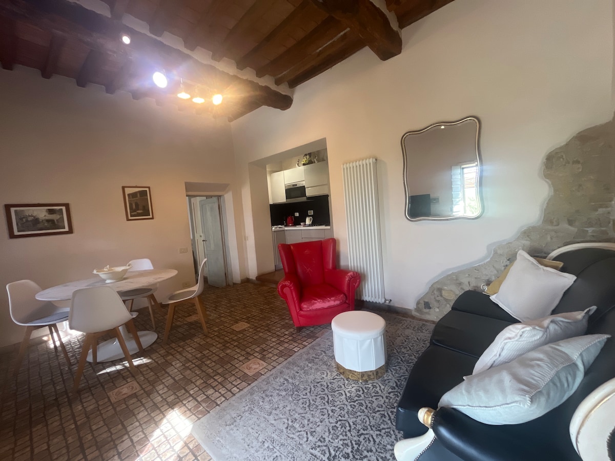 Piccolo e confortevole appartamento per 2 persone arredato in stile toscano e con travi a vista,immerso tra le dolci colline della campagna toscana. A disposizione degli ospiti spazio esterno con tavolo,piscina condivisa,forno a legna e barbecue,piccola lavanderia,wi-fi. L'appartamento è stato ricavato da una graziosa casa colonica in pietra del 1800 recentemente ristrutturata secondo la tradizione toscana e suddivisa in tre comodi appartamenti