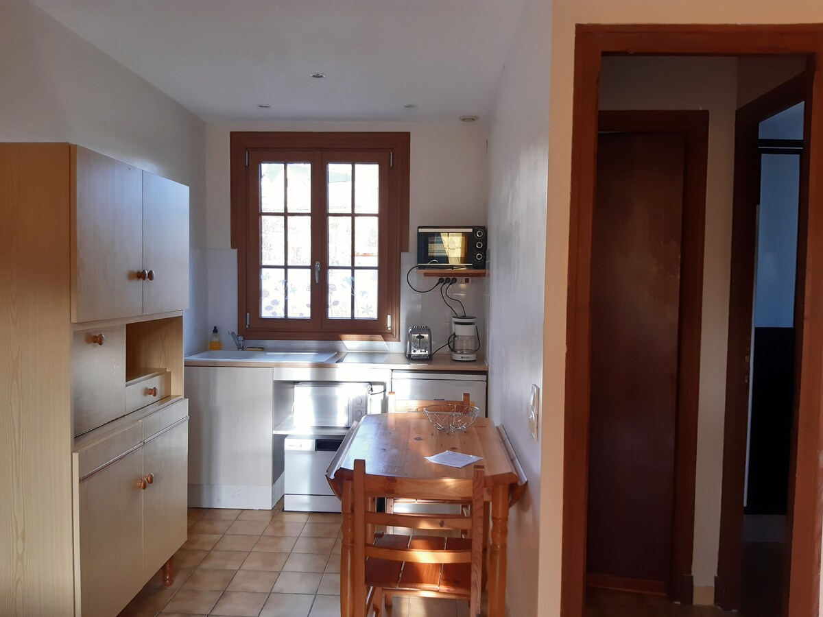 Fully renovated 2-star studio including: an entrance with large cupboard – wardrobe and washing machine. a fully equipped kitchen and dining area: mini oven, microwave, dishes, vitroceramic cooktop, coffee maker, raclette service, toaster, etc. a living room-night area with sofa, TV and retractable bed to save space, in front of a large bay window overlooking the Bastan river and the valley. pleasant and refurbished bathroom, with large shower, sink, towel dryer radiator. Toilet.