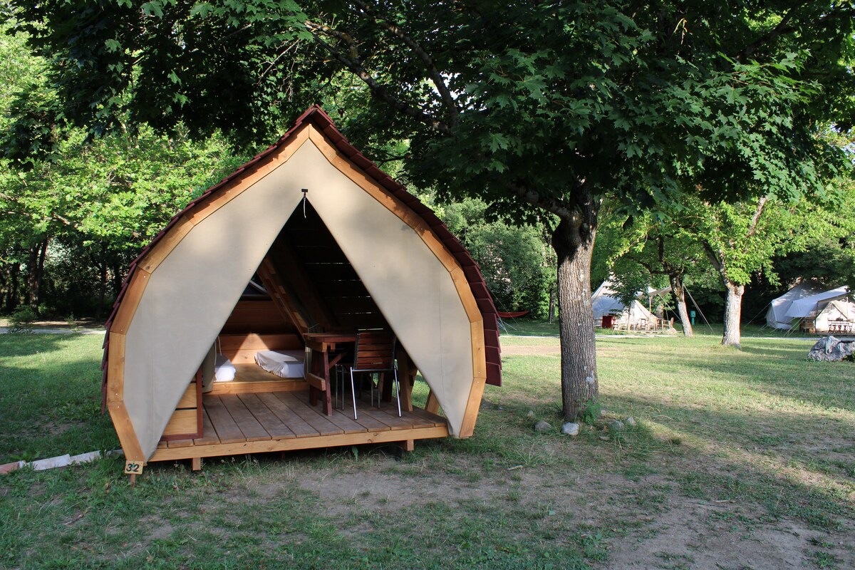 The tiny house is located on the edge of a one-hectare field, in the middle of a wine-growing and agricultural land cultivated organically with the Diois mountains as a backdrop. It's a secluded and natural farmhouse. The river is a 5-10 minute walk, by small wild trails, crossing the Natura 2000 area. The lucky ones will be able to observe beavers, kingfishers, and yellow wagtails. This maisonette is intended for nature lovers, looking for a quiet and wild corner.