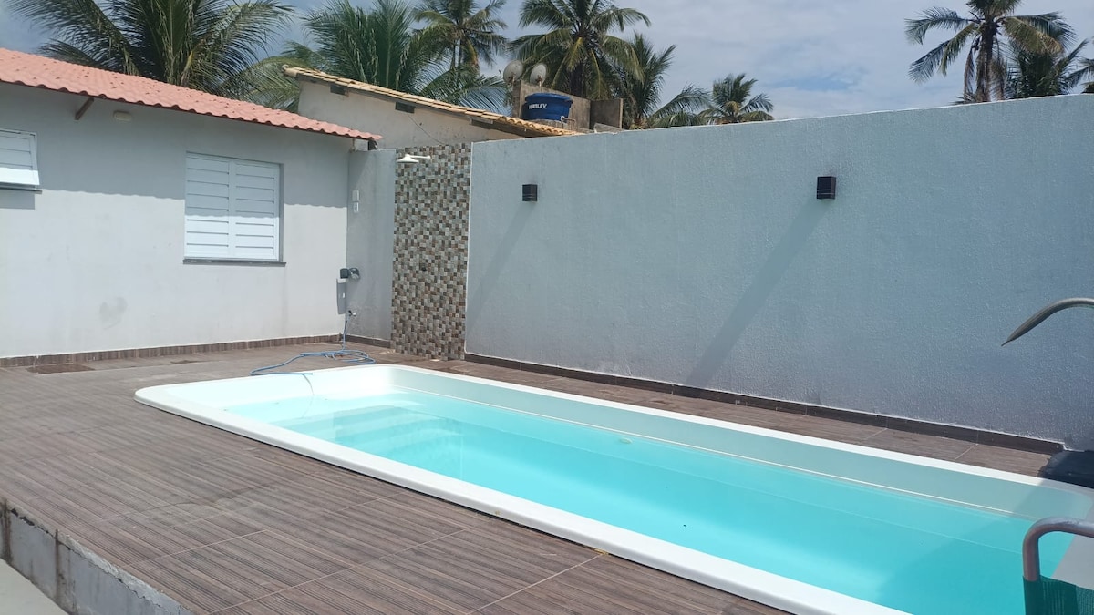 Come spend incredible days in a beautiful house in Atalaia Nova, with a large green area, swimming pool, kiosk with barbecue and bathroom. The house has 3 bedrooms, 2 of which are semi-suite with a total of 3 double beds and two mattresses. Kitchen equipped with refrigerator, drinking fountain, microwave, stove and basic kitchen utensils (dishes, etc.) Living room with Sky TV package with extensive programming including Premiere. Wi-Fi with 30mb Fiber Optic Internet and security camera only in the green area