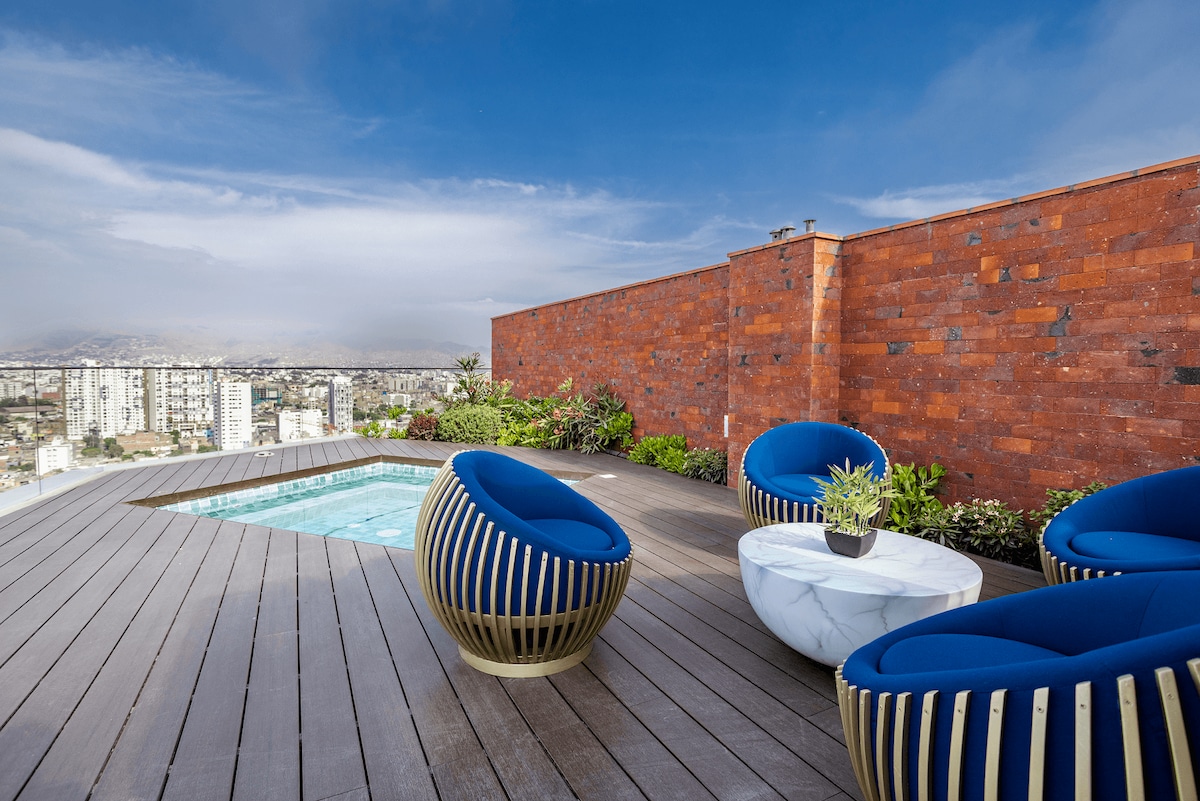 Luxury apartment a few steps from the Barranco esplanade, bordering Miraflores. Enjoy a walk with the best ocean view and security within Lima. You'll be super close to the best restaurants in the world (Central Restaurant), museums, and the city's best attractions. With the opportunity to end your day with the beauty of the sunset on an exclusive and elegant rooftop.