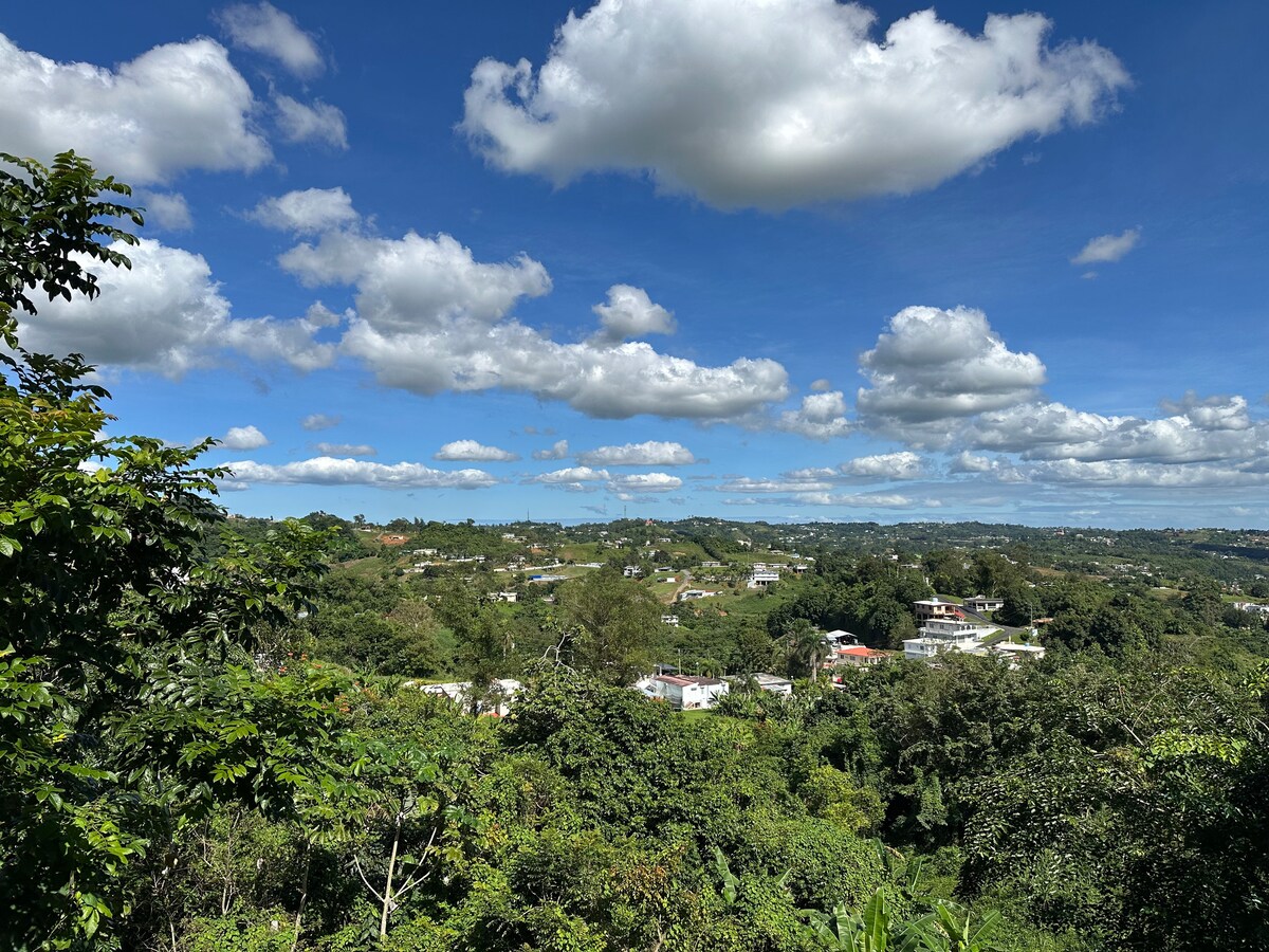 Retreat, Rest and Relax at this unique and tranquil mountain getaway. Be in awe of the amazing view of the mountains from el Yunque to Barceloneta with the Atlantic Ocean as a backdrop. Amazing spot for bird watching and enjoying the sounds of the forest. Almost always the weather is cool and comfortable. 20 min. Car drive to the amazing one of a kind Cañón San Cristobal and the Barranquitas main square.
