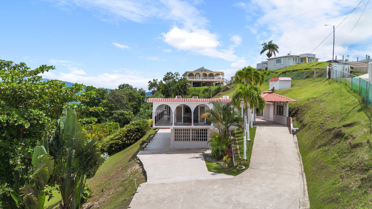 This charming retreat offers breathtaking mountain, city, and ocean views. A fully equipped kitchen and cozy King and Queen beds, it's the perfect spot to relax and recharge in nature, just 38 minutes from SJU airport. Unwind by the pool, fire pit 🔥 , or hammock, or explore nearby attractions like ziplining, lakes, and horseback riding. Local cuisine and exclusive tour guide recommendations offer an authentic experience. Close enough to Old San Juan and beaches for day trips!