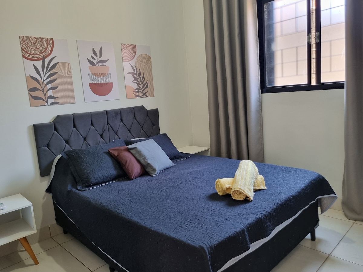 Rest and Comfort at Your Fingertips! Enjoy an exclusive space with an air-conditioned bedroom with a comfortable double bed and wardrobe (single room). Bed linen and towels are available. Living room and kitchen combined. In the living room, you will enjoy a sofa bed, ceiling fan and 32" Smart TV with Netflix. Kitchen equipped with stove, refrigerator, pots, dishes and cutlery. Ideal for small meals. Private parking (uncovered). Ideal for relaxing and exploring the city!