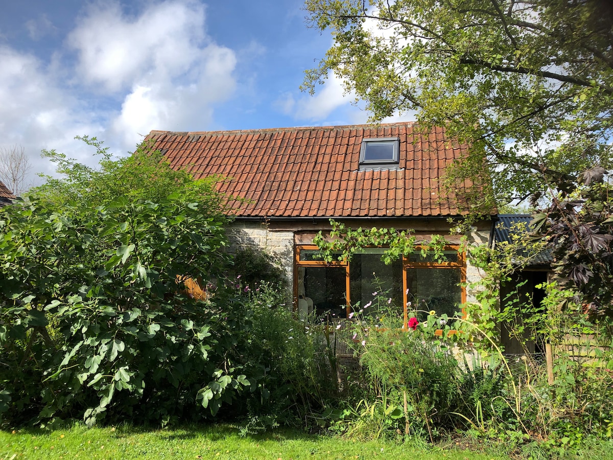 The Hideaway is a barn style coach house with separate entrance (attached to the main house). Located 3miles from Glastonbury & 10mins from Millfield School/Clarkes Village. loungers , fire pit, large garden and a paddock with a view of Glastonbury Tor. Perfect for couples & families fantastic walks & cycling in the area. A modern fully equipped kitchen, scandi inspired interiors, deliciously comfortable beds with crisp linen/towels.Swimming pool (May-October) shared use ,Hot tub private use