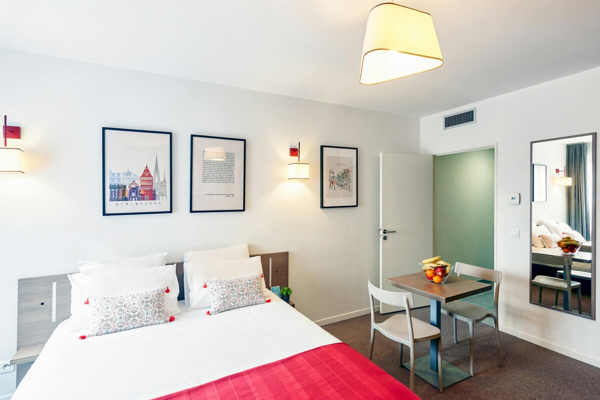 Breakfast included - Our Comfort rooms average 12m² and are the ideal accommodation for a getaway in Strasbourg city centre, featuring a double bed, a bathroom with shower, free wifi, a television, and a hair dryer.
