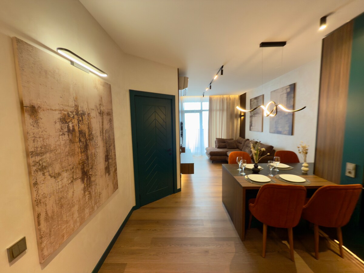 Welcome to Porta Exclusive Loft by Aesthaven - a new apartment on a high floor of the iconic Porta Batumi Tower. Enjoy panoramic views of the Black Sea, modern design, and quality appliances. Every detail is created for your comfort. The apartment accommodates 1 to 4 guests. Great location - just steps from the Old Town, the seaside boulevard, restaurants, and main attractions.