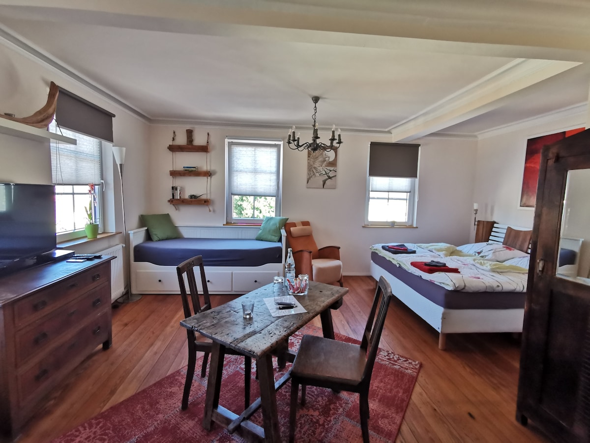 Room No. 1 offers 24 m² of space for 1 to 4 guests. Each room has its own entrance and is brightly and pleasantly furnished. During your stay, you will have a bedroom and a bathroom with shower and toilet at your disposal. Your room is equipped with Wi-Fi and TV. Breakfast can be booked at any time for an additional fee. The guesthouse offers you practical amenities to make your stay as pleasant as possible. Enjoy comfort and functional facilities during your visit.