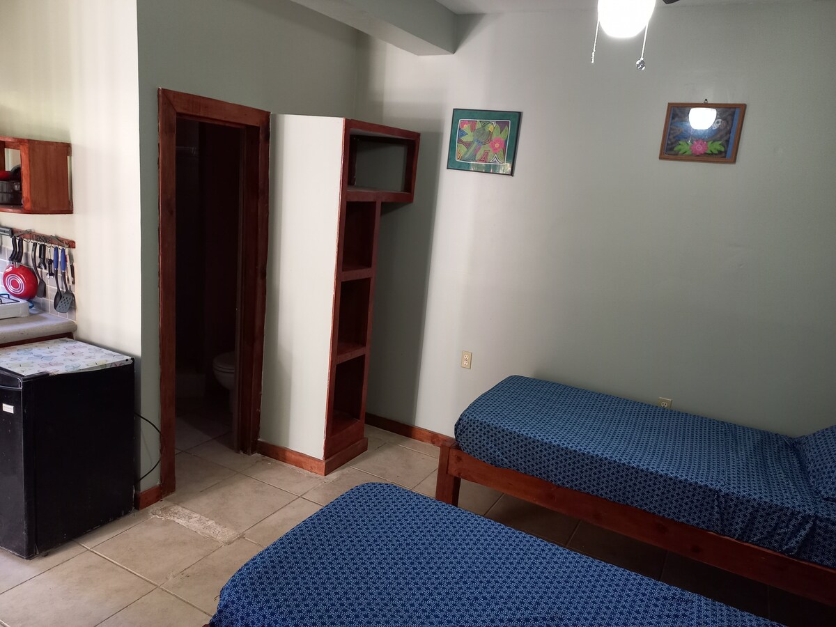 The apartment is in the MANURII Garden on the ground floor. A lush garden is around the apartment. Our cozy fire pit is just one step away. Our garden is full with fruits and flowers. We have a coffee machine at our bar which is available from 7am-10am free of charge. There are plenty of bars in Utila. Our bar is more a Meeting point and not with a bar tender all the time. But you have your own fridge at the Apartment.